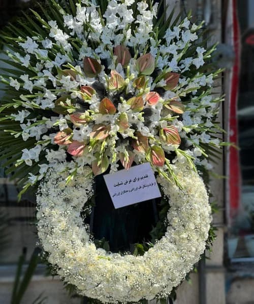 کد 9 – مدل ترحیم حلقهای با گلایول سفید و آنتوریوم صورتی