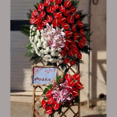 کد 56- مدل پایه‌دار بزرگ افتتاحیه با گل‌های صورتی و سفید